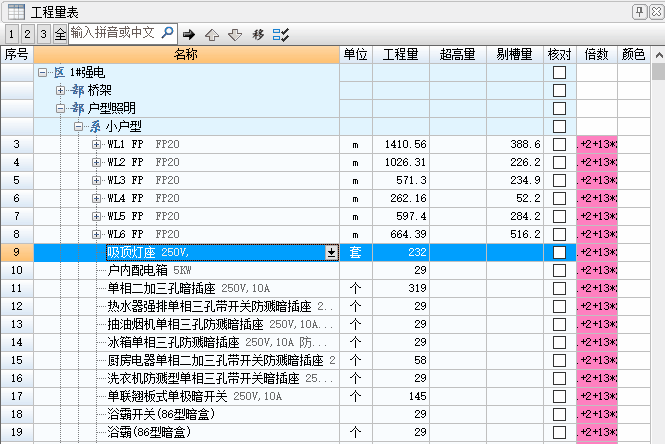 立管设置剔槽属性后,剔槽工程量自动计算;